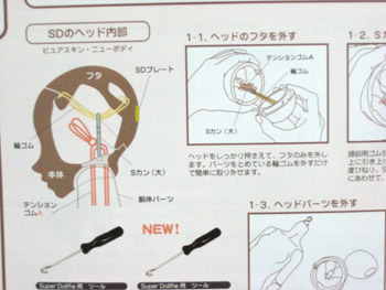 以前アイを変えたときに頭のフタを外すのにかなり苦労したし、この説明書みたいに輪ゴムか何かでフタをSカンに引っ掛けるようにすればこれから楽じゃね?