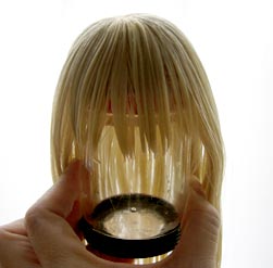 お湯をかける前に、まずはウィッグを固定するものを探します。